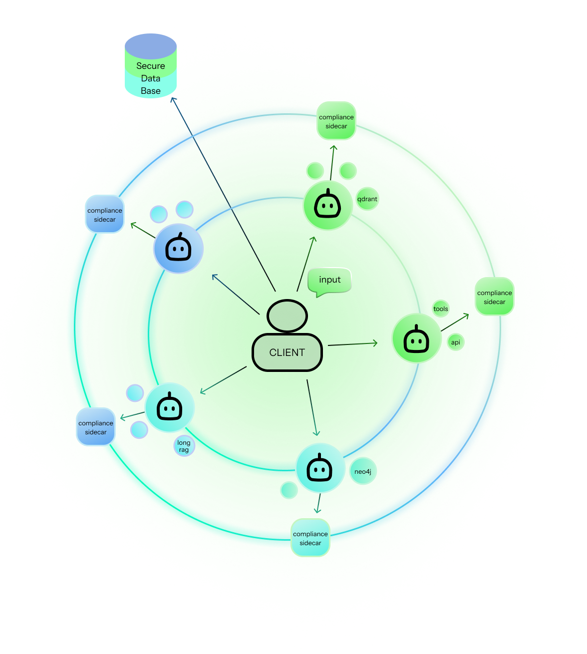 We kicked off foundational research after recognizing a major gap in current AI systems: most were not built for regulated, high-stakes environments. Our work centered on decentralized, domain-specific agents capable of secure communication with strict privacy and auditability.